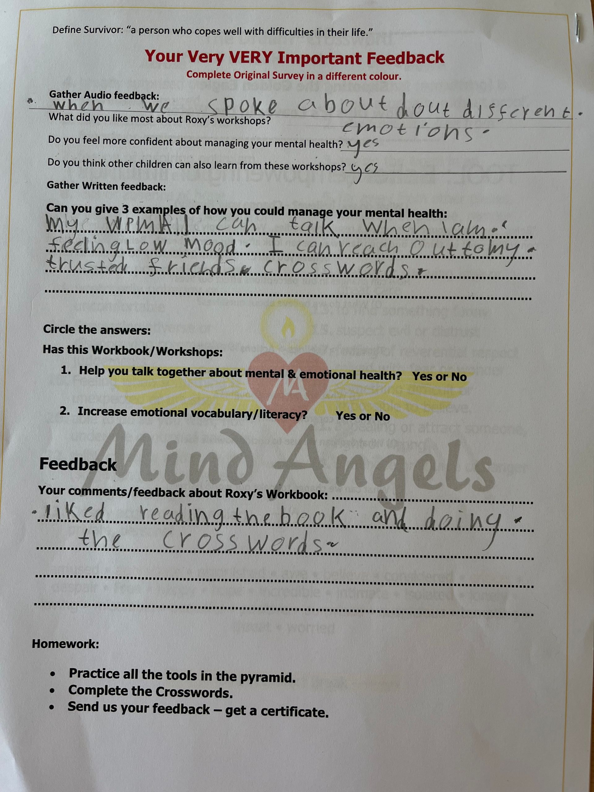 All profits from the workbook go to Mind Angels Charity, delivering more children and elderly projects.